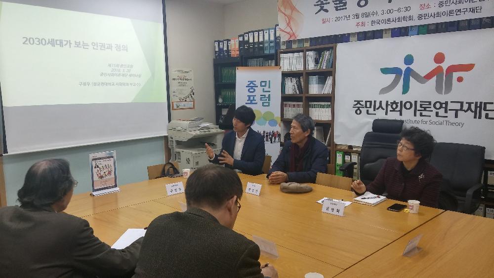 Prof Koo Jeong-Woo of Sungkyunkwan University participated in 15th Joongmin forum and made a presentation on ¡°Human Rights and Justice as seen by the 2030 Generation.¡±