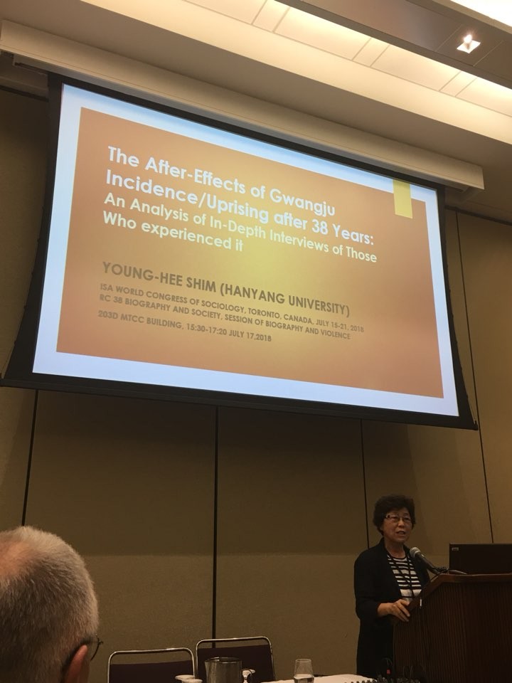 On July 17th 2018, Prof. Shim Young-Hee made presentation on ¡°The After-Effect of Gwangju Upspring After 38 Years¡± at RC 38 ¡®Biography and Violence¡¯ session at the ISA in Toronto.