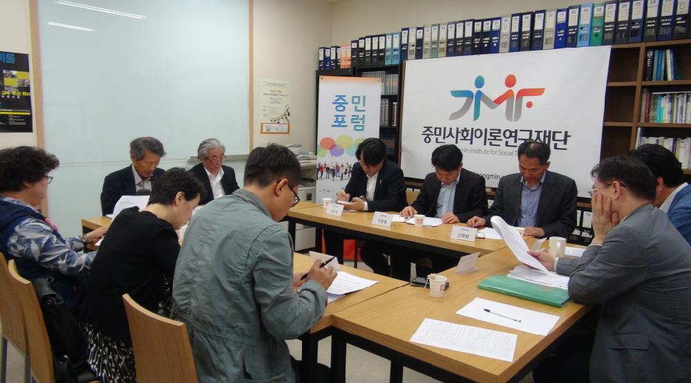 Joongmin Foundation for Social Theory launched Joongmin Forum on April 28. The purpose of Joongmin Forum is to open a space of deliberation where outstanding researchers and original intellectuals/thinkers are invited to discuss practical public agendas and theoretical issues which have important implications for the future of our society in the form of brainstorming debate in order to get clues and inspirations for new research and thinking. The first Joongmin Forum began with raising following question: how and where can we find the resources of new imagination and thinking to overcome the limit of the modern and to cope with impending problems of the global risk society within the East–Asian tradition? The first keynote speech by Prof. Tai-Youn Hwang (Dongguk University) was about ¡®the implication of the Confucian politics of empathy and the utopia of great harmony for the future of East Asia¡¯ and the second keynote speech by Prof. Sang-Jin Han (Seoul National University) was about ¡®East-Asian context of the second modern transformation¡¯. Connected to them, there was a heating discussion which all participants took part in.